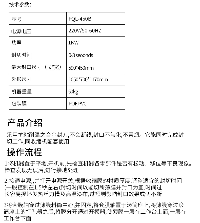FQL-450B 封切熱收縮機